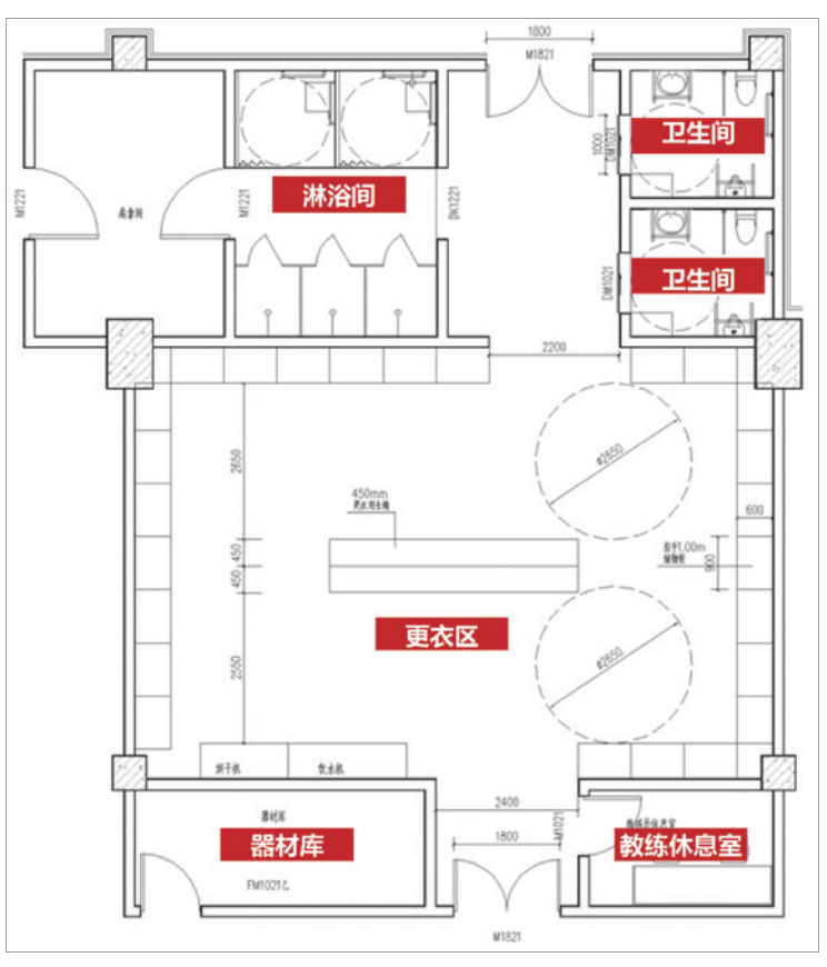 輪椅冰壺訓(xùn)練館無(wú)障礙運(yùn)動(dòng)員休息室每間包括更衣區(qū)、無(wú)障礙衛(wèi)生間(2個(gè)單間)、無(wú)障礙淋浴間(2個(gè)隔間)及清潔間;更衣區(qū)內(nèi)部設(shè)有直徑2.60m的輪椅回轉(zhuǎn)空間。