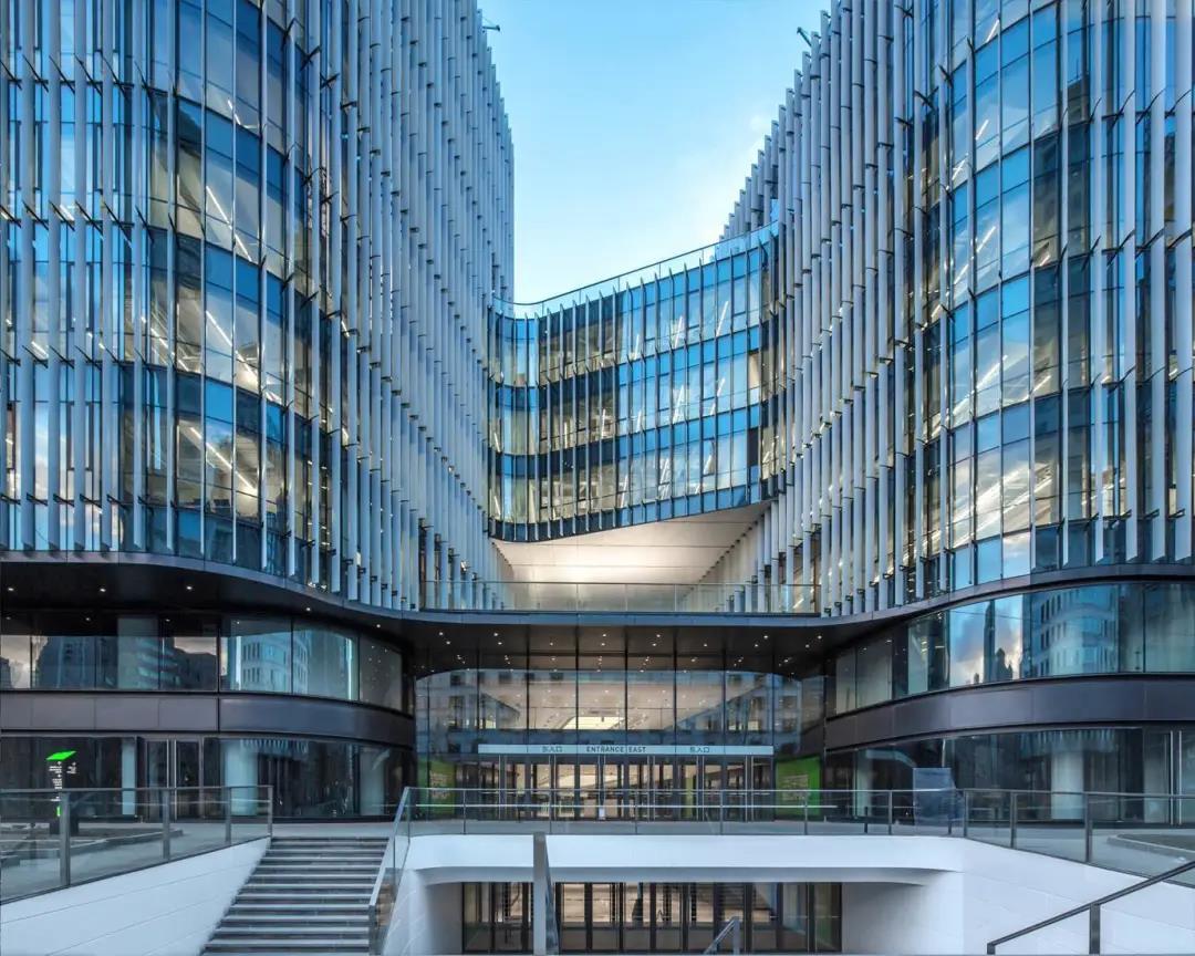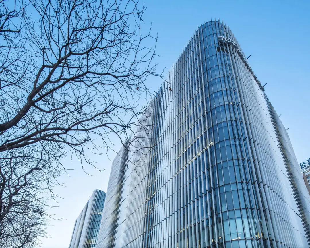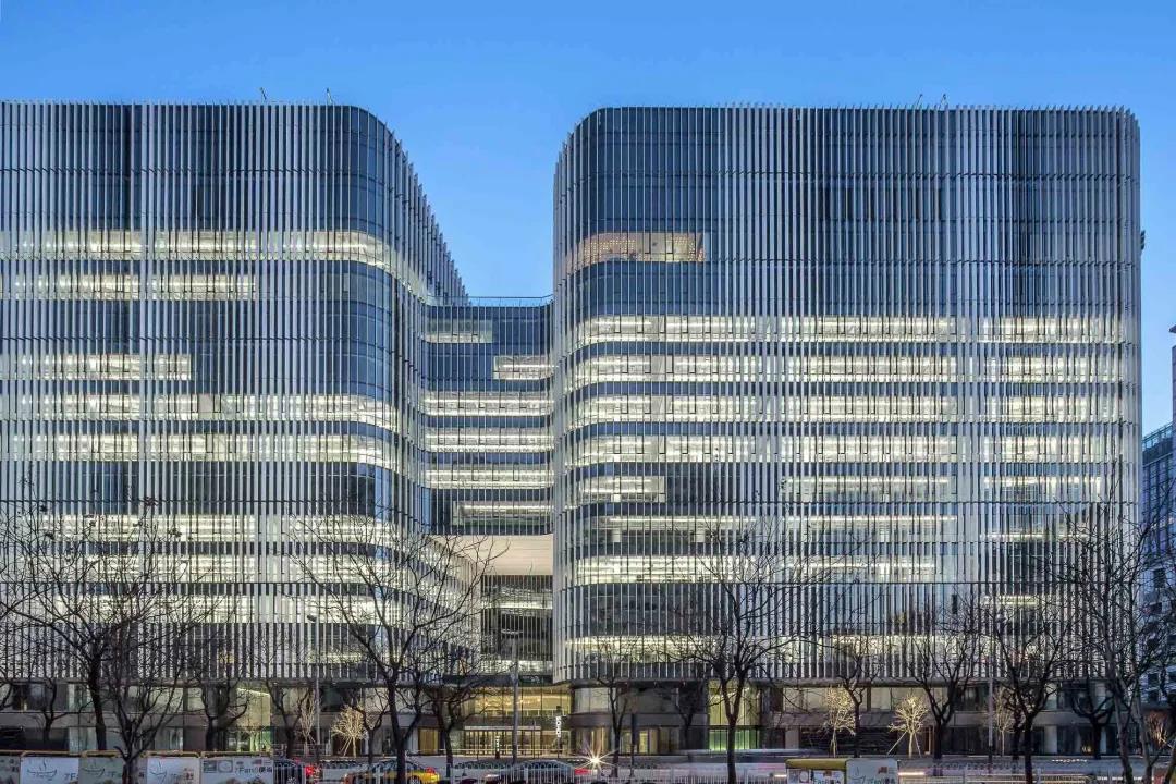 項(xiàng)目位于玻璃幕墻之間的垂直百葉可對采光進(jìn)行調(diào)節(jié),同時(shí)也給建筑的立面帶來柔和清透如波浪般的光澤,如同一層浮動于建筑表面的垂簾,彰顯建筑整體的輕靈優(yōu)雅。