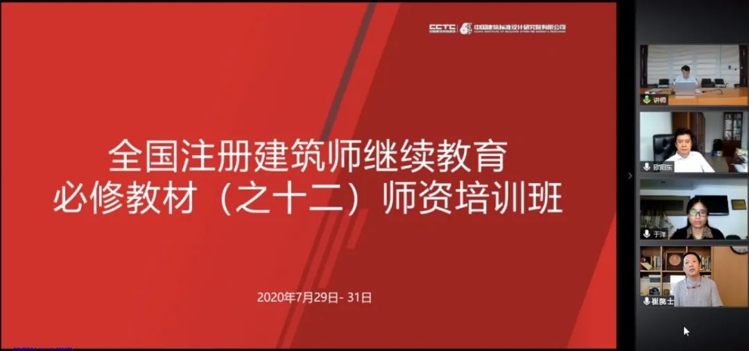 2020年7月29日-7月31日,由標準院主辦的“全國注冊建筑師繼續(xù)教育必修教材(之十二)師資培訓班”在北京成功舉辦。這是我國首次針對裝配式建筑領域,舉辦全國范圍的師資培訓。經“全國注冊建筑師管理委員會”與“住房和城鄉(xiāng)建設部執(zhí)業(yè)資格注冊中心”共同研究,全國師資培訓首次采用線上直播的方式。培訓教材為《裝配式建筑系統(tǒng)集成與設計建造方法》。