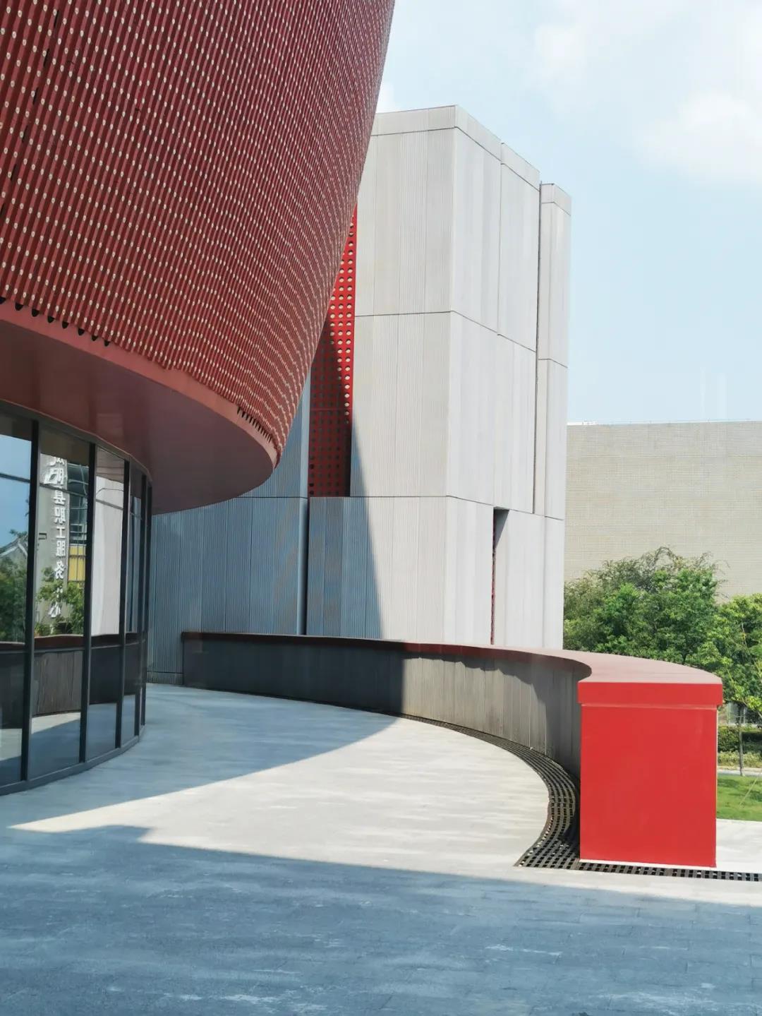 ▲宛如飄帶的玻璃幕墻,與“花鼓造型”上鳳凰擺尾的圖案形成呼應