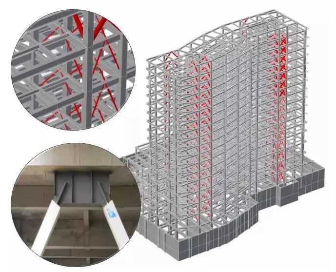 結(jié)構(gòu)系統(tǒng)采用鋼結(jié)構(gòu)體系,材料性能好,標準化程度高,施工周期短。較之傳統(tǒng)的支撐結(jié)構(gòu),減震構(gòu)件表現(xiàn)出優(yōu)良的耗能能力。延長建筑壽命,保證醫(yī)院安全,體現(xiàn)可持續(xù)和人性化的重要技術(shù)措施。