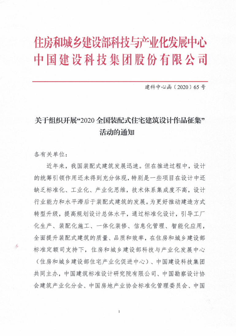 關(guān)于組織開展“2020全國裝配式住宅建筑設(shè)計作品征集”活動的通知