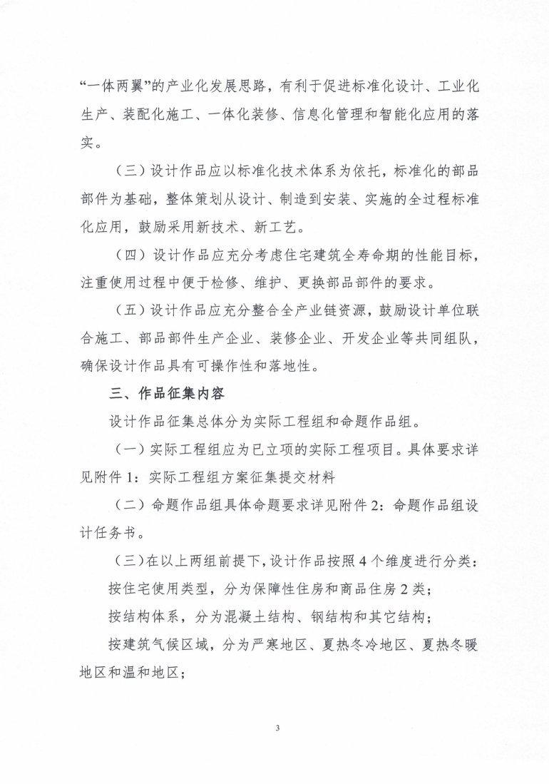 (五)設(shè)計作品應(yīng)充分整合全產(chǎn)業(yè)鏈資源,鼓勵設(shè)計單位聯(lián)合施工、部品部件生產(chǎn)企業(yè)、裝修企業(yè)、開發(fā)企業(yè)等共同組隊,確保設(shè)計作品具有可操作性和落地性。