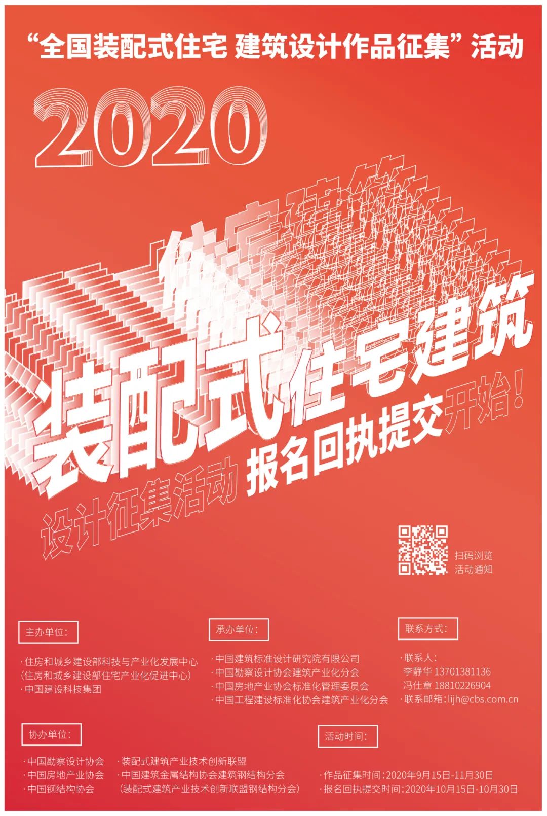 全國裝配式住宅建筑設計作品征集活動自啟動以來,收到了諸多高校、地產開發(fā)商、設計機構及個人的報名意向,自2020年10月15日至10月30日,活動正式進行報名回執(zhí)表提交,請參與的單位及個人注意提報時間,及時提交回執(zhí)表。