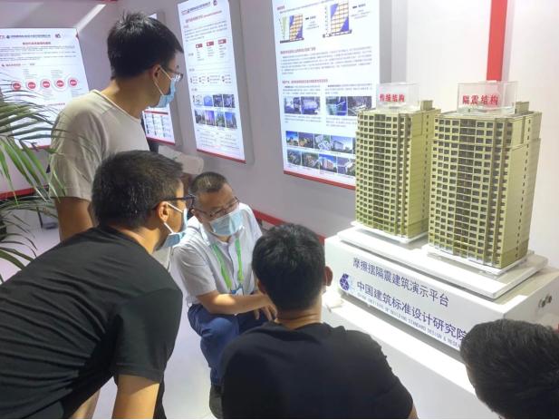 標(biāo)準(zhǔn)院在展會(huì)上展示的摩擦擺隔震建筑演示平臺(tái),成了當(dāng)之無(wú)愧的焦點(diǎn)展品,一直被參觀者包圍著,咨詢者絡(luò)繹不絕。