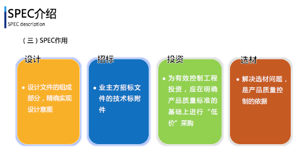 建筑產(chǎn)品技術(shù)規(guī)格說(shuō)明書(shū)(Specification,簡(jiǎn)稱(chēng)SPEC)源自外資/港資背景顧問(wèn)公司在配合業(yè)主進(jìn)行項(xiàng)目建造總承包商招標(biāo)時(shí)提交的技術(shù)文件,明確了投標(biāo)方的工作界面和服務(wù)內(nèi)容,通常包括工程簡(jiǎn)介、招標(biāo)范圍、技術(shù)要求、規(guī)范標(biāo)準(zhǔn)、設(shè)備清單、企業(yè)資質(zhì)證明、產(chǎn)品檢驗(yàn)報(bào)告及施工驗(yàn)收要求等,但形式、內(nèi)容也會(huì)根據(jù)工程實(shí)際要求繁簡(jiǎn)不一。SPEC為業(yè)主的總包合同編制提供了依據(jù)。