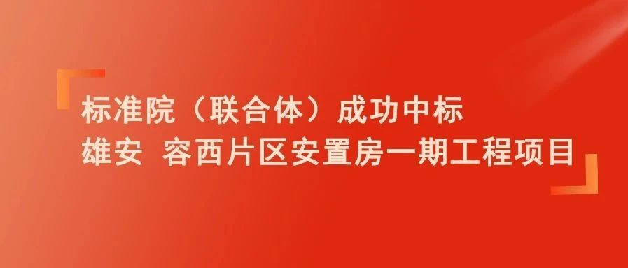 再中一元!標(biāo)準(zhǔn)院(聯(lián)合體)成功中標(biāo)雄安容西片區(qū)安置房一期工程項(xiàng)目